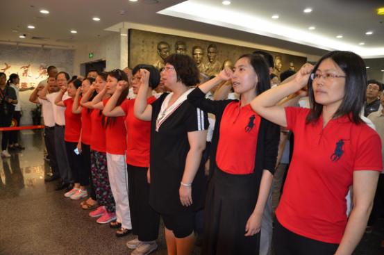 在上海中共一大会址,全体党员集体瞻仰了中共一大代表群像浮雕,参观了《伟大开端——中国共产党创建历史陈列》,“前赴后继、救亡图存”、“风云际会、相约建党”、“群英汇聚、开天辟地”等专题展区,深入了解了我们党波澜壮阔的历史和伟大奋斗征程。在纪念馆鲜红的巨幅党旗前,全体党员庄严地举起右手,掷地有声地重温入党誓词,将对党的承诺深深印入脑海,记在心间。