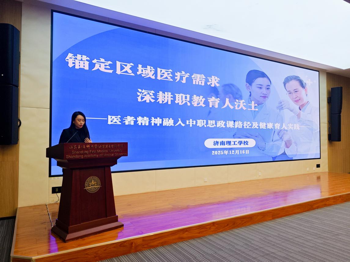 焦月(山东省济南理工学校文化医养系主任)围绕《锚定区域医疗需求 深耕职教育人沃土》主题,分享了职业学校对接区域产业、培育健康服务人才的实践与思考。
