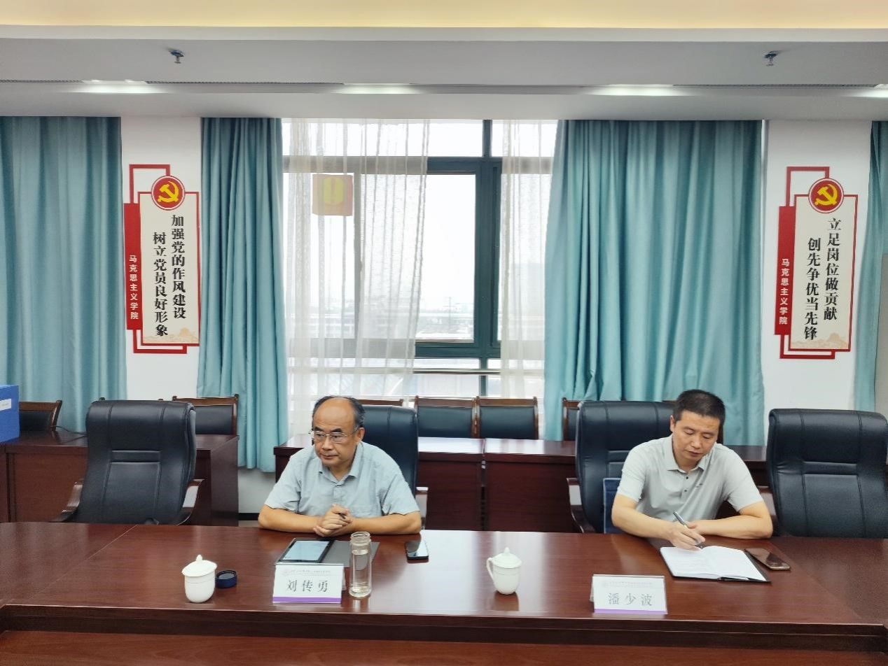 826日上午,副校(院)长刘传勇到PP电子游戏网站调研,并与学院领导班子、中国近现代史纲要教研室教师进行座谈交流。教务部副部长潘少波陪同调研。